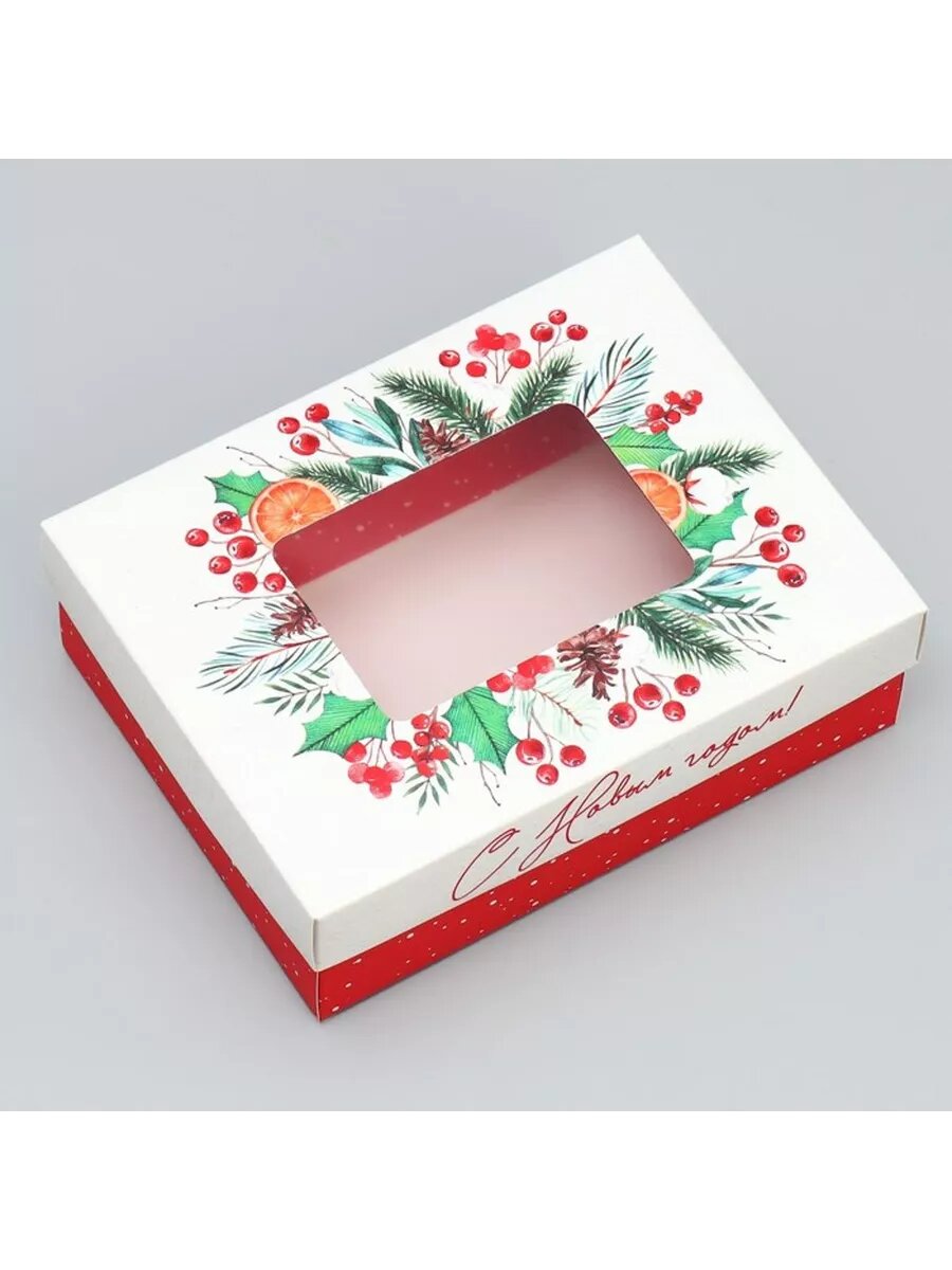 Коробка подарочная новогодняя складная «С Новым годом», венок, 16.5 х 12.5 х 5 см, Новый год информация: