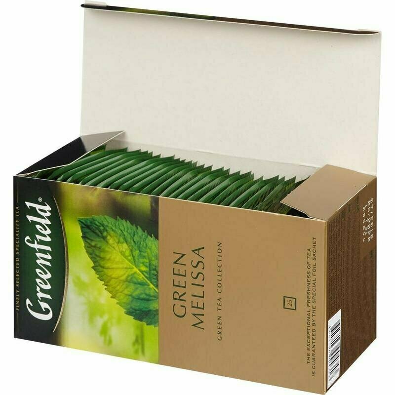 10 цен на Чай Greenfield Green Melissa зеленый с добавками, 25 пакетиков