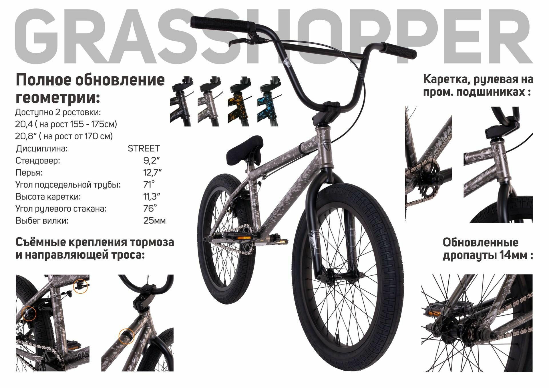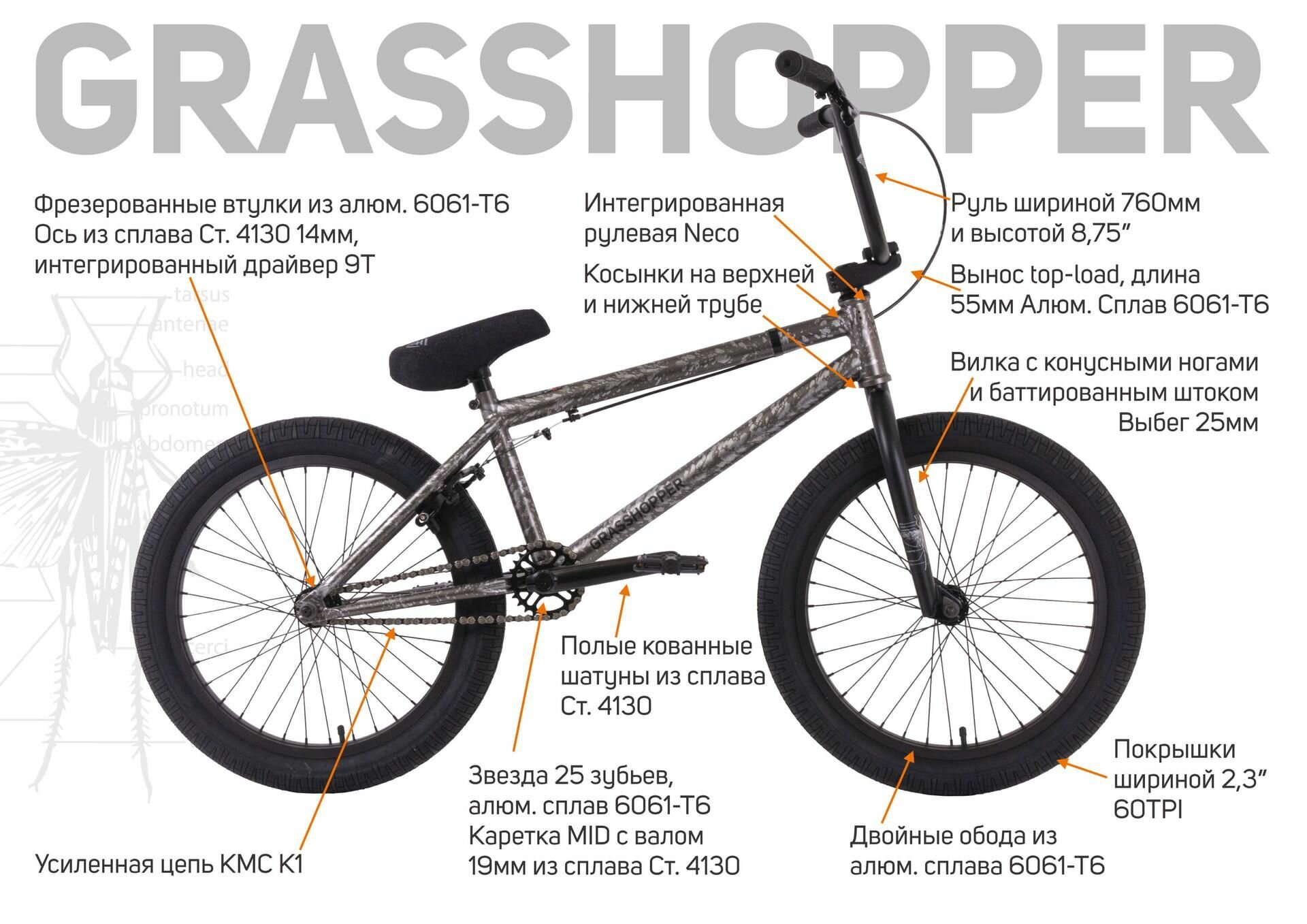 Велосипед BMX Tech Team Grasshopper серый 20,8"х20" 2024 26 000 ₽