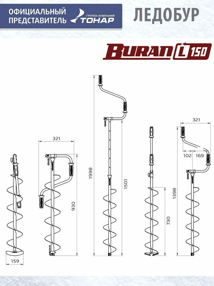 Ледобур BURAN 150L левое вращение, цельнотянутый шнек (LB-150L) Тонар информация: