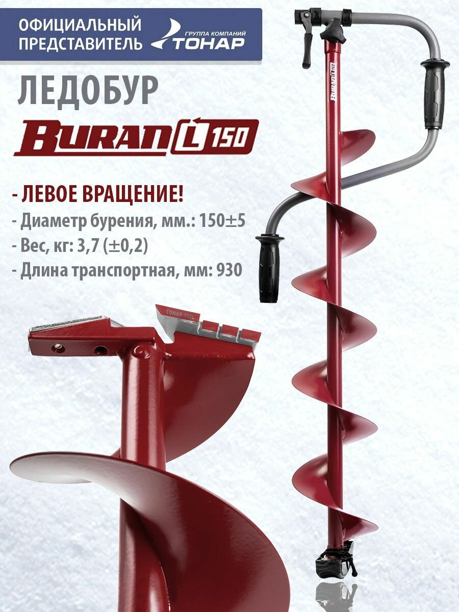 Отзывы на Ледобур BURAN 150L левое вращение, цельнотянутый шнек (LB-150L) Тонар