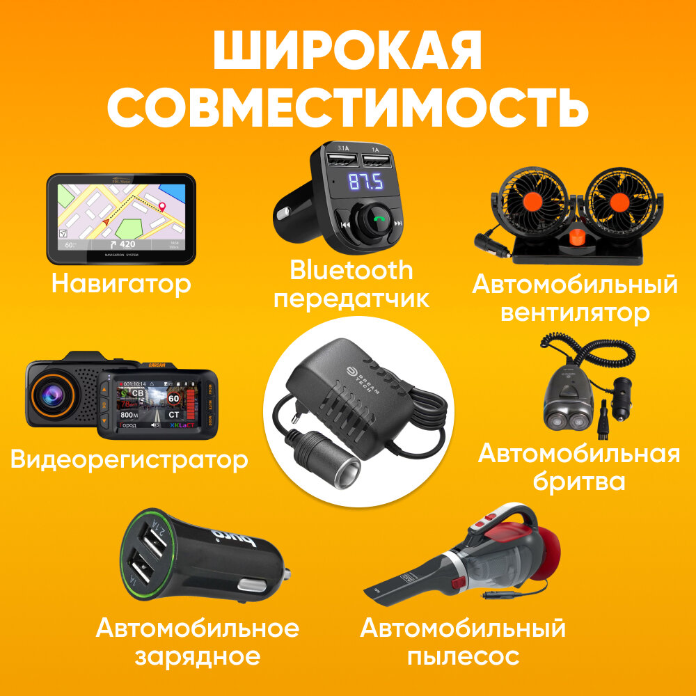 Отзывы на Адаптер сетевой с гнездом прикуривателя 220В, 12В, 2 А/Преобразователь напряжения