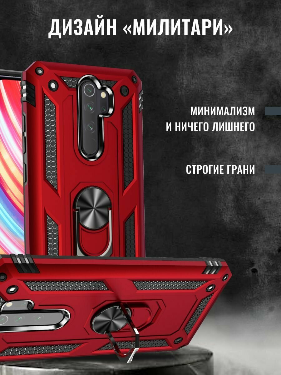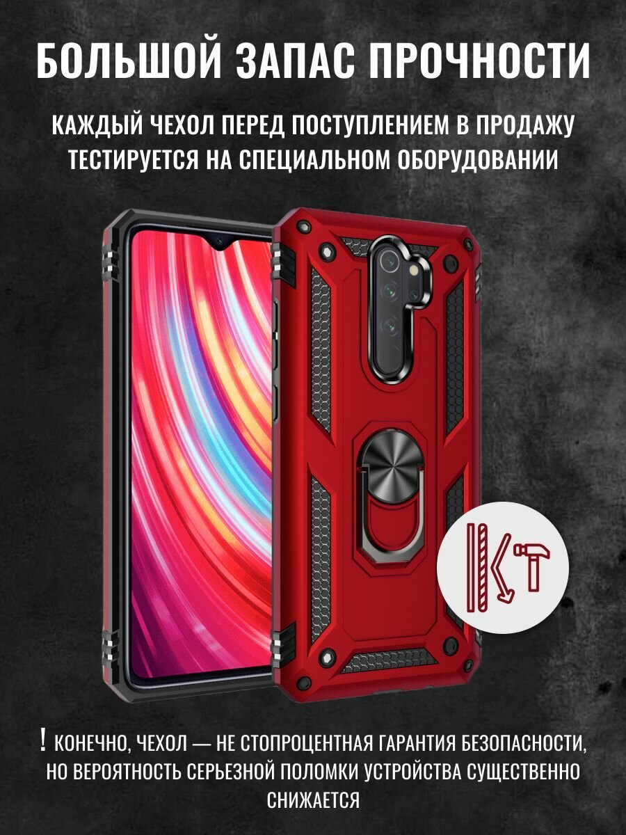 Чехол на Redmi Note 8 Pro противоударный защитный бампер с кольцом-подставкой на Редми Нот 8 Про красный информация: