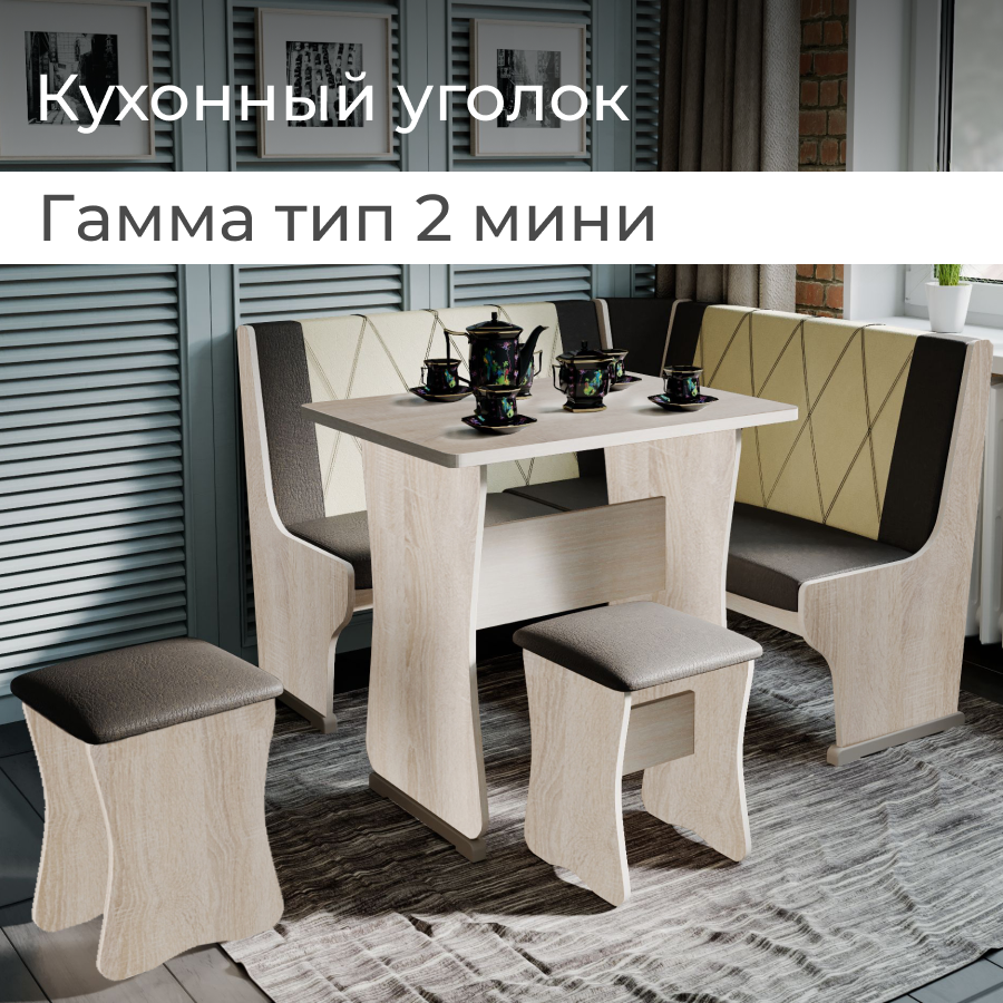 10 цен на Кухонный уголок BONMEBEL Гамма Тип 2 Мини, ЛДСП Дуб Сонома/КЗ Шоколад/Бежевый, стол, диван, табуреты