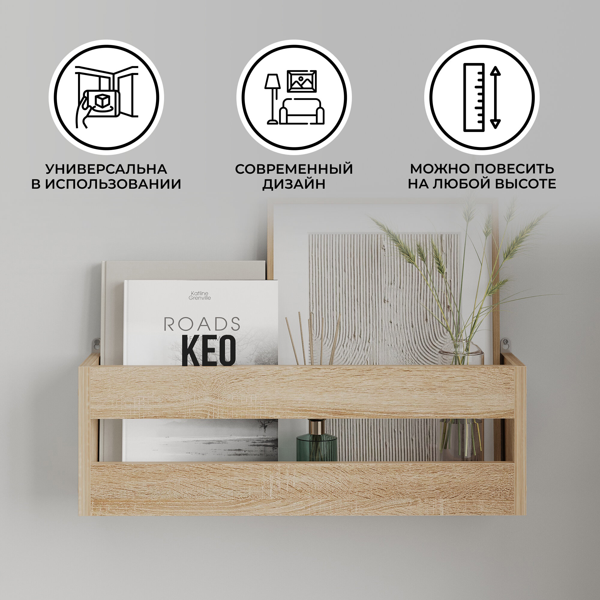 Отзывы на Полка настенная маленькая Кео ПЛК-202 сонома для книг 20х60х15 см