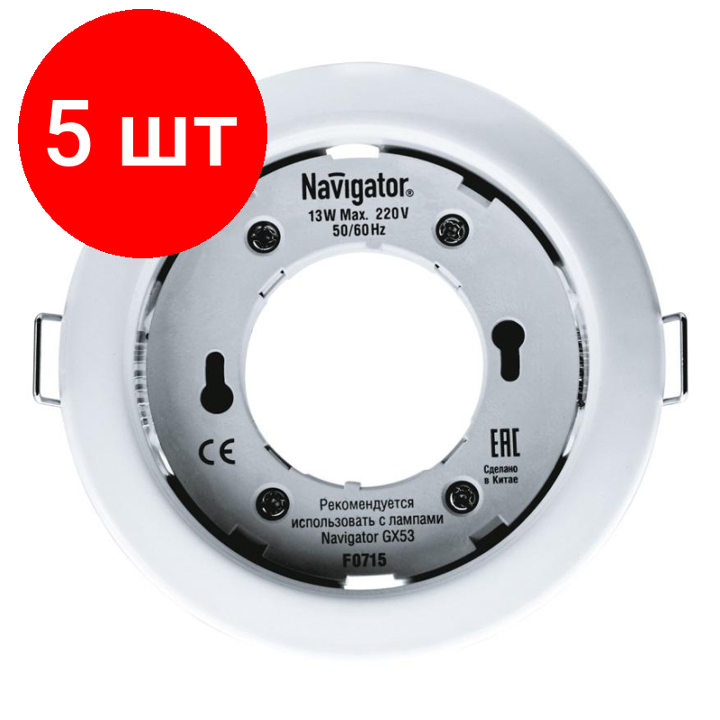 Комплект 5 штук, Светильник светодиодный Navigator NGX-R1-001-GX53 IP20 круг бел 71277