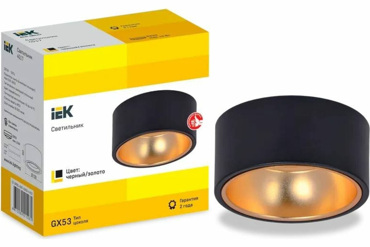 Светильник потолочный 4017 IEK накладной GX53 черный/золото