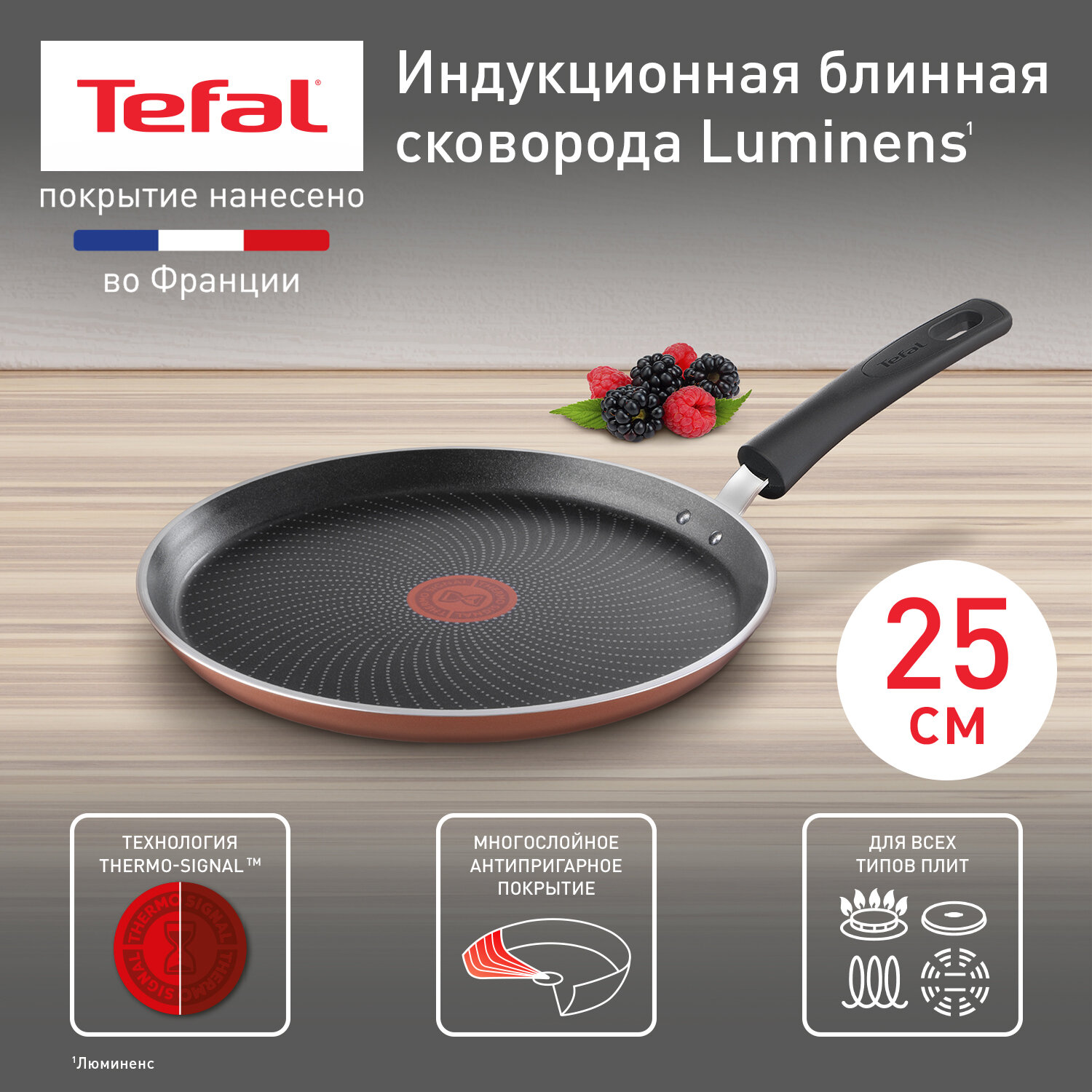 10 цен на Блинная сковорода Tefal Luminens 04229525 25 см, с индикатором температуры, с антипригарным покрытием, подходит для индукции