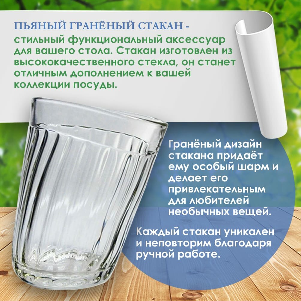 Пьяный граненый стакан (250 мл), ручная работа информация: