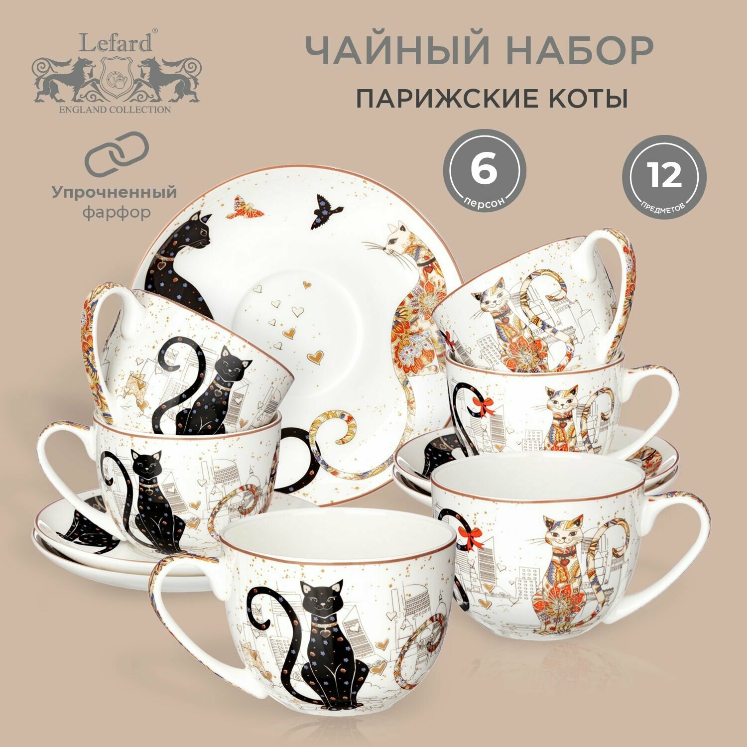 10 цен на Чайный набор Lefard "Парижские Коты" на 6 пер. 12 пр., 330 мл.