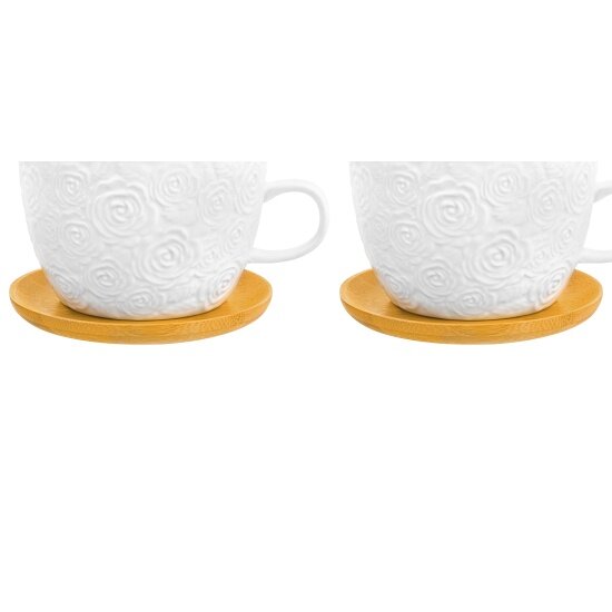 Кофейная пара Elan Gallery "Розы" с деревянной подставкой, 500 мл, на 2 персоны информация:
