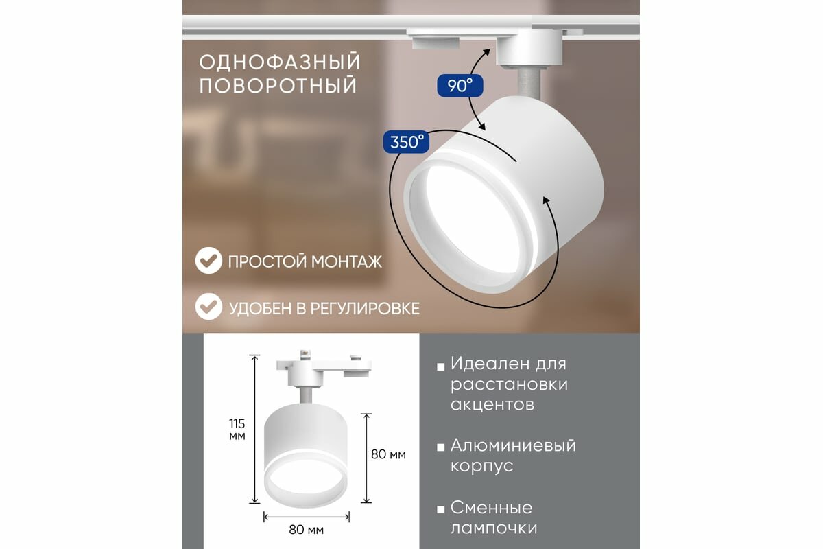 10 цен на Светильник трековый под лампу GX53, белый, AL163, Feron, 41921