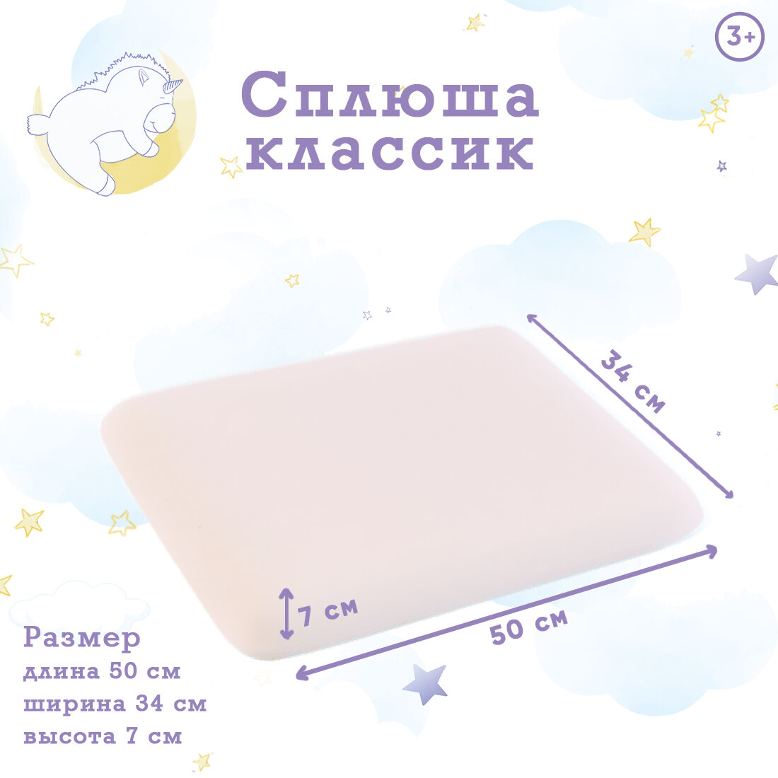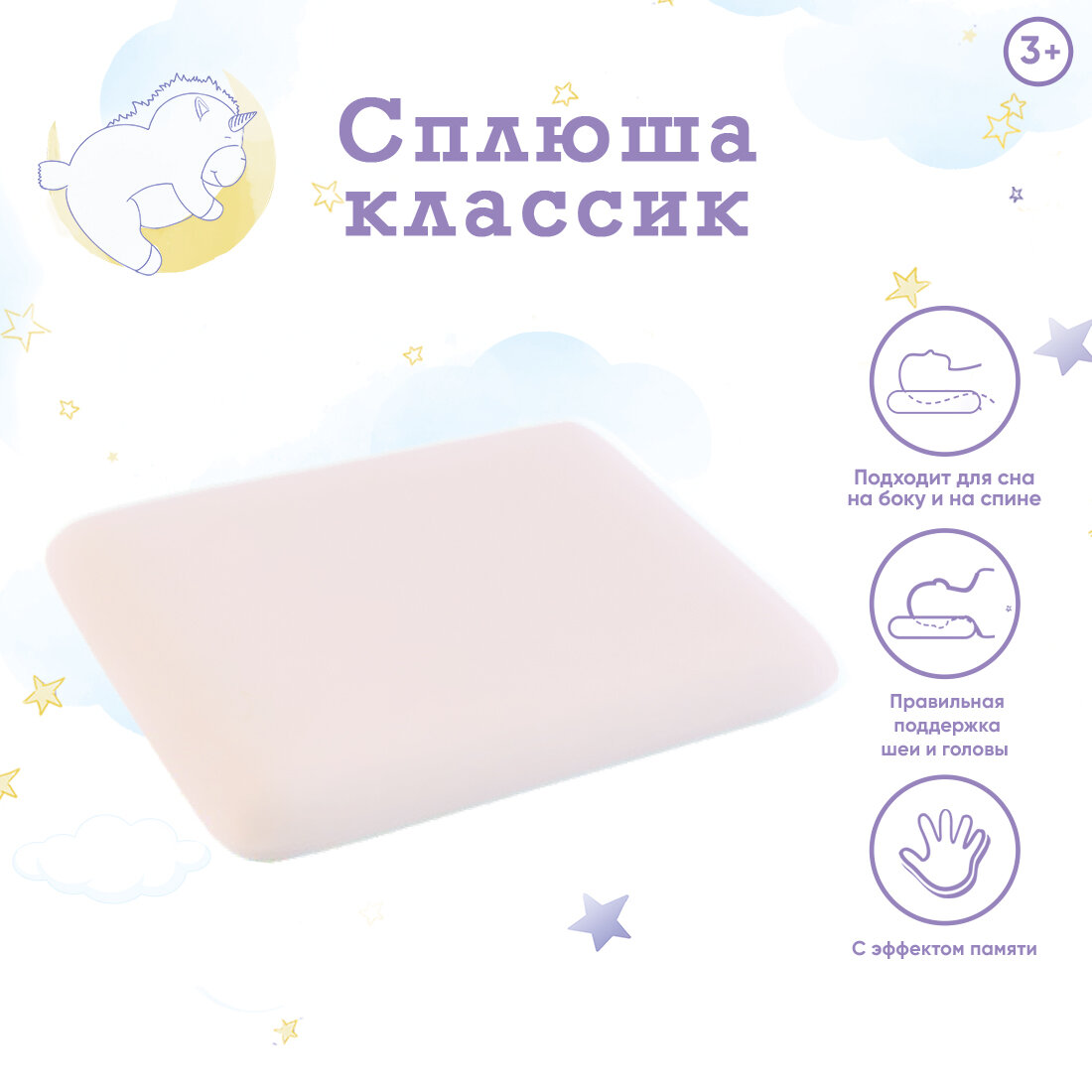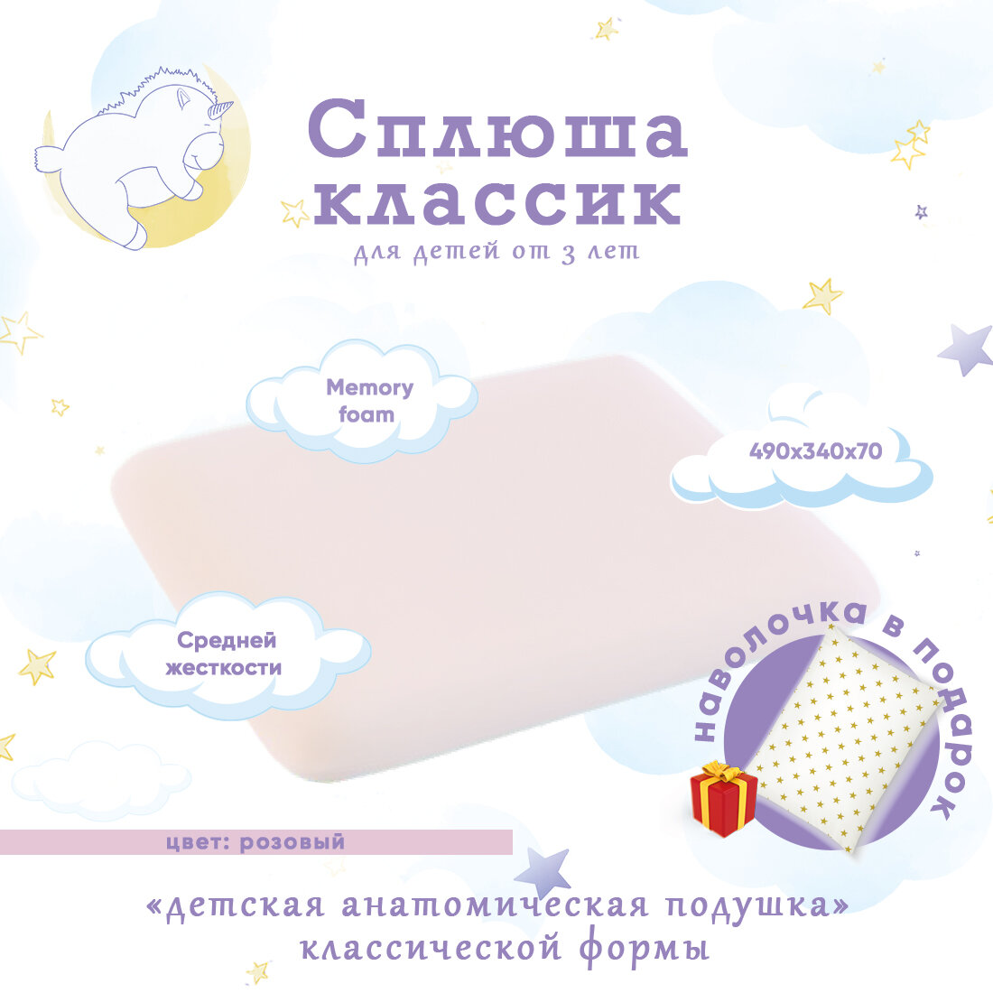 Детская подушка Сплюша Классик от 3 лет, розовый, 35x50 информация: