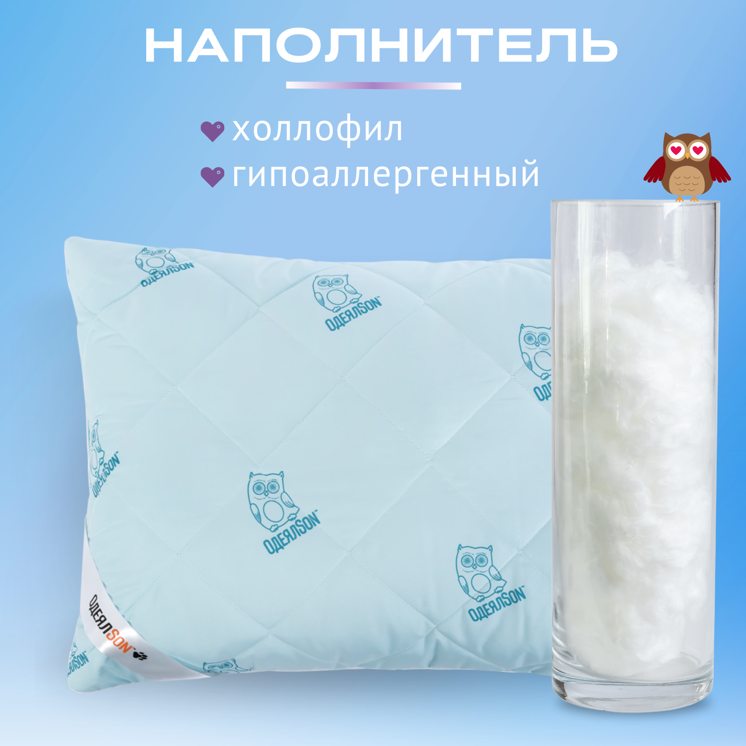 Подушка "Сова" от бренда "Мягкий сон", 50 x 70 см, гипоаллергенная, упругая 1 228 ₽
