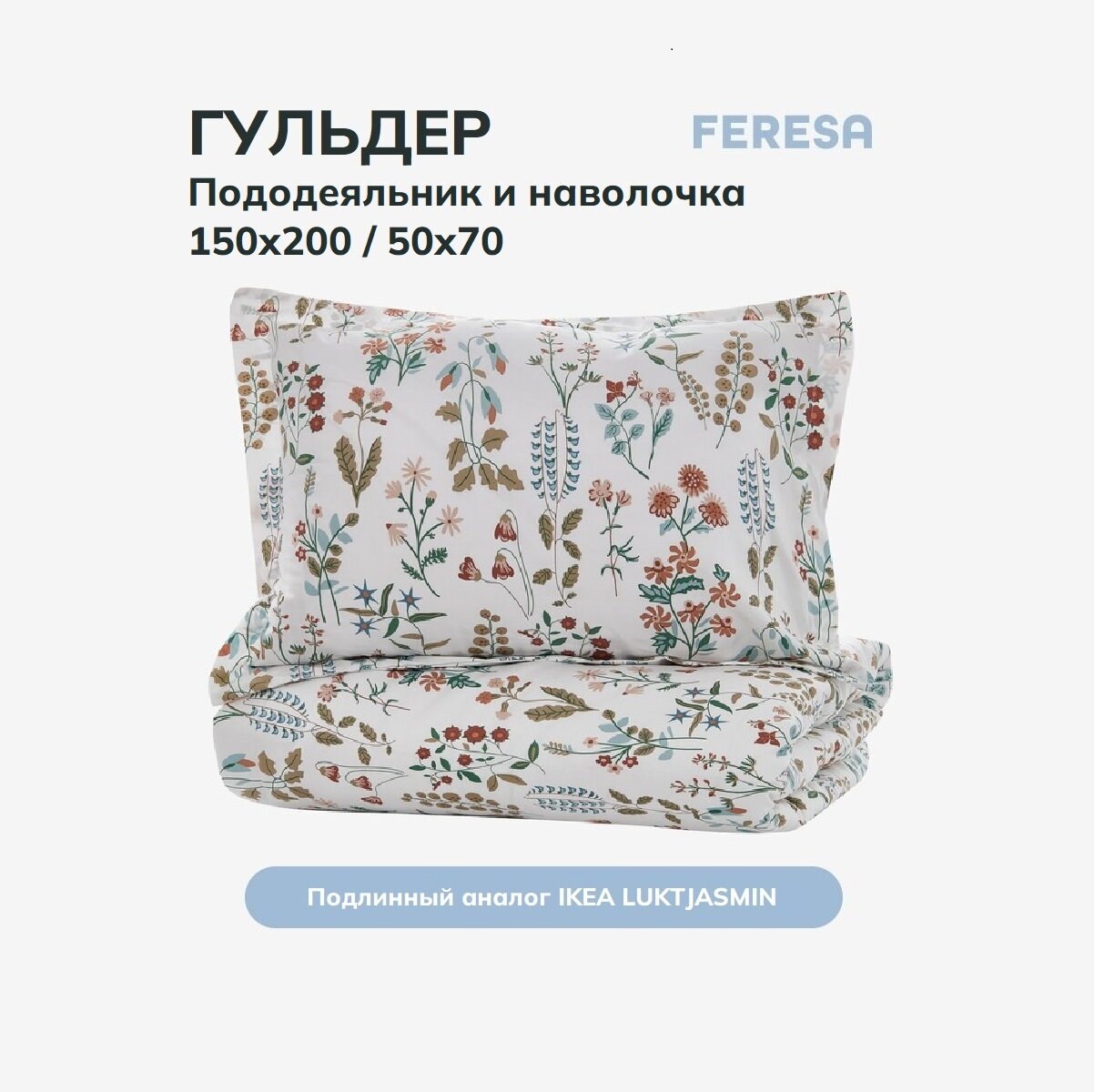 Постельное белье 1.5 спальное , Feresa Гульдер/LUKTJASMIN, сатин, пододеяльник 150 х 200, наволочки 50x70 (1 шт), аналог икеа 3 419 ₽