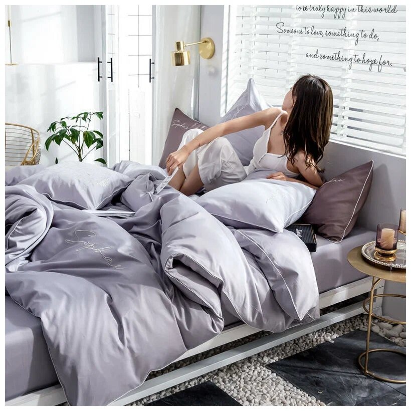 Комплект постельного белья Mency однотонный с вышивкой 2х спальный информация: