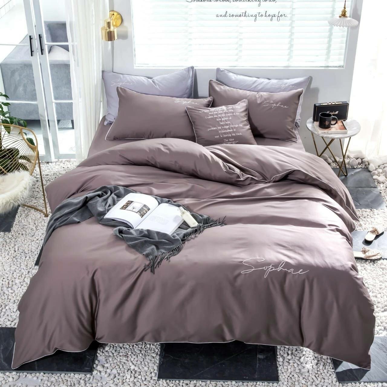 Комплект постельного белья Mency 2 спальный, Сатин, Сиренево-коричневый 2 960 ₽