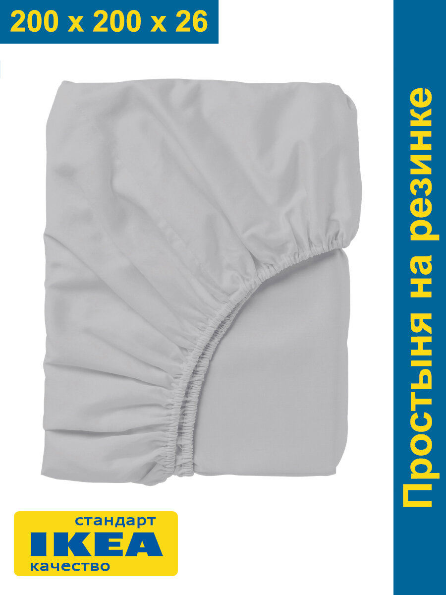 Простыня на резинке 200х200 персея (икеа персия) светло-серый сатин, лиоцелл информация: