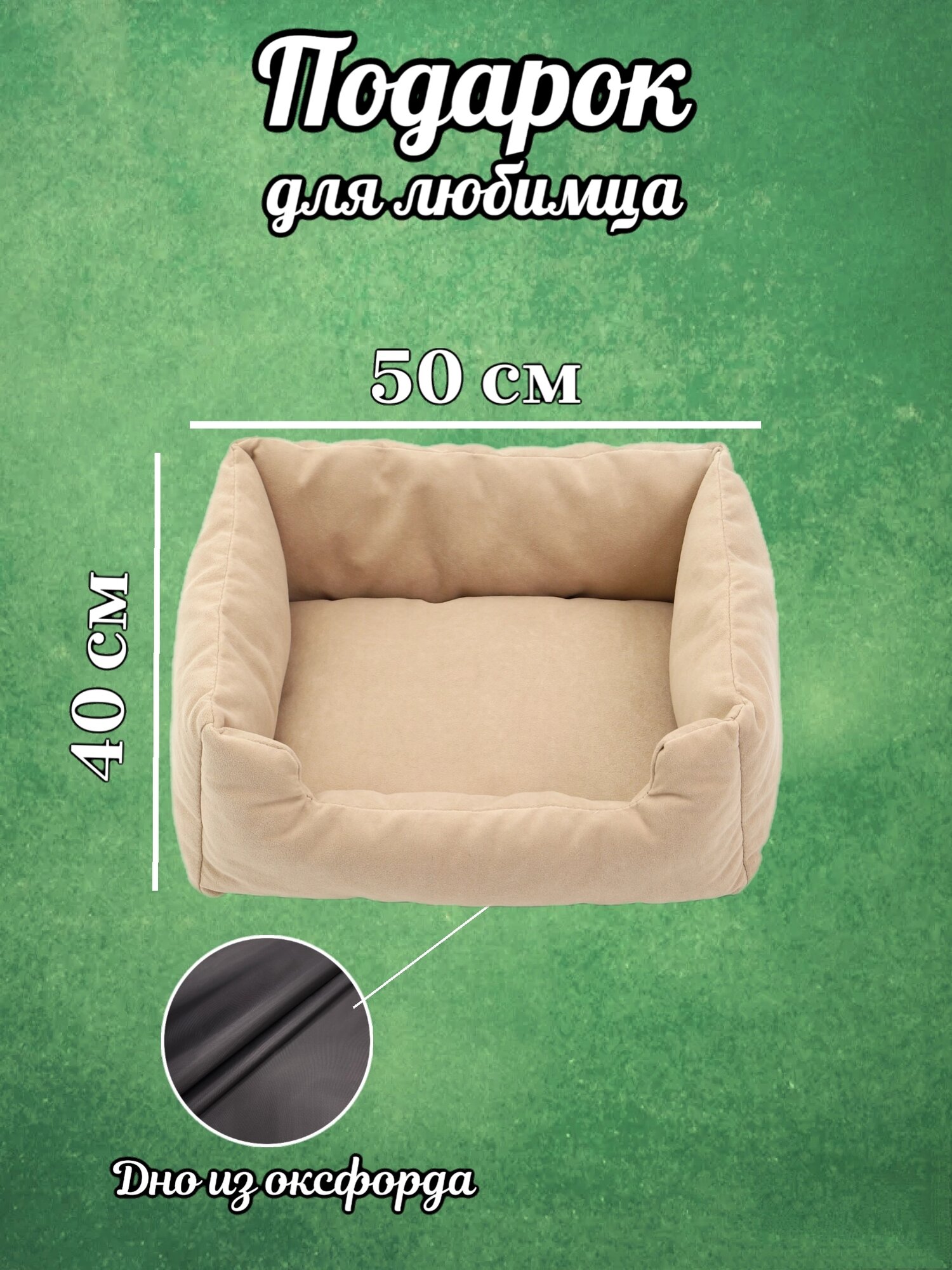 Лежанка, для кошек и собак, маленьких пород, прямоугольная, кремовый, 50х40х23 см информация:
