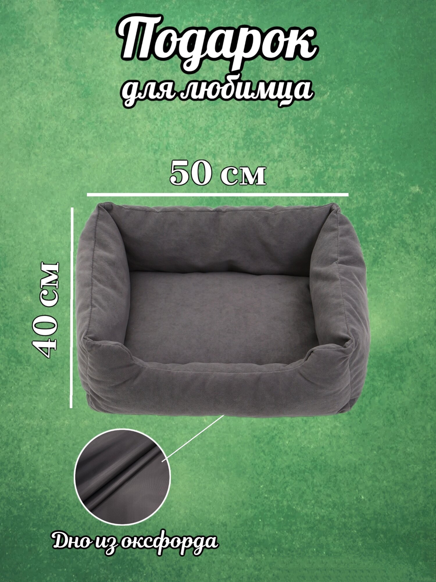 Лежанка, для кошек и собак, маленьких пород, прямоугольная, серый, 50х40х23 см информация: