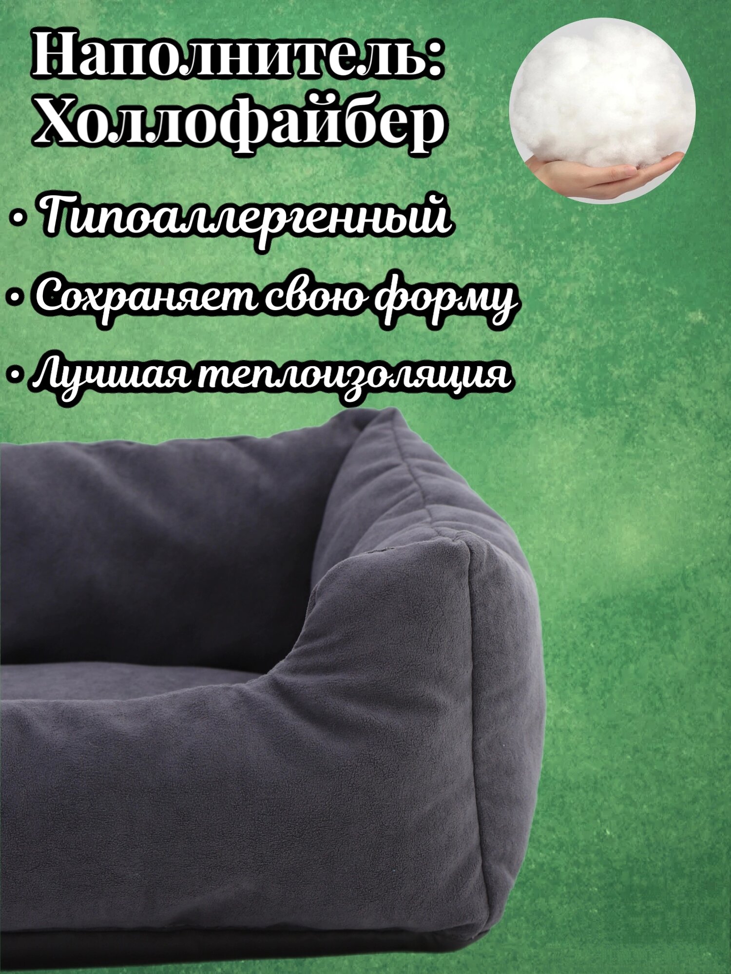 Лежанка, для кошек и собак, маленьких пород, прямоугольная, темно-серый, 50х40х23 см информация: