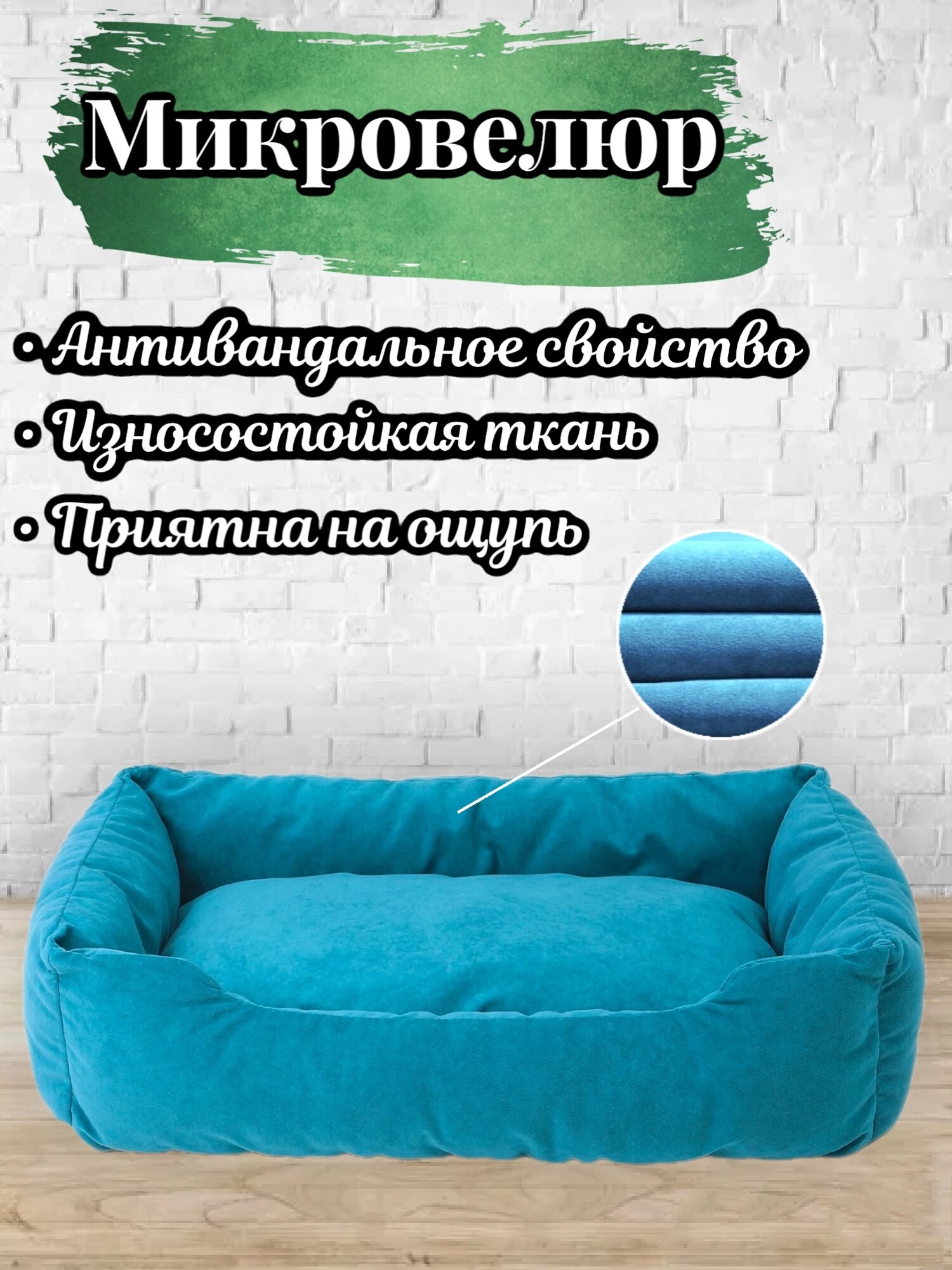 Лежанка, для кошек и собак, маленьких и средних пород, прямоугольная, бирюзовый, 70х50х23 см информация: