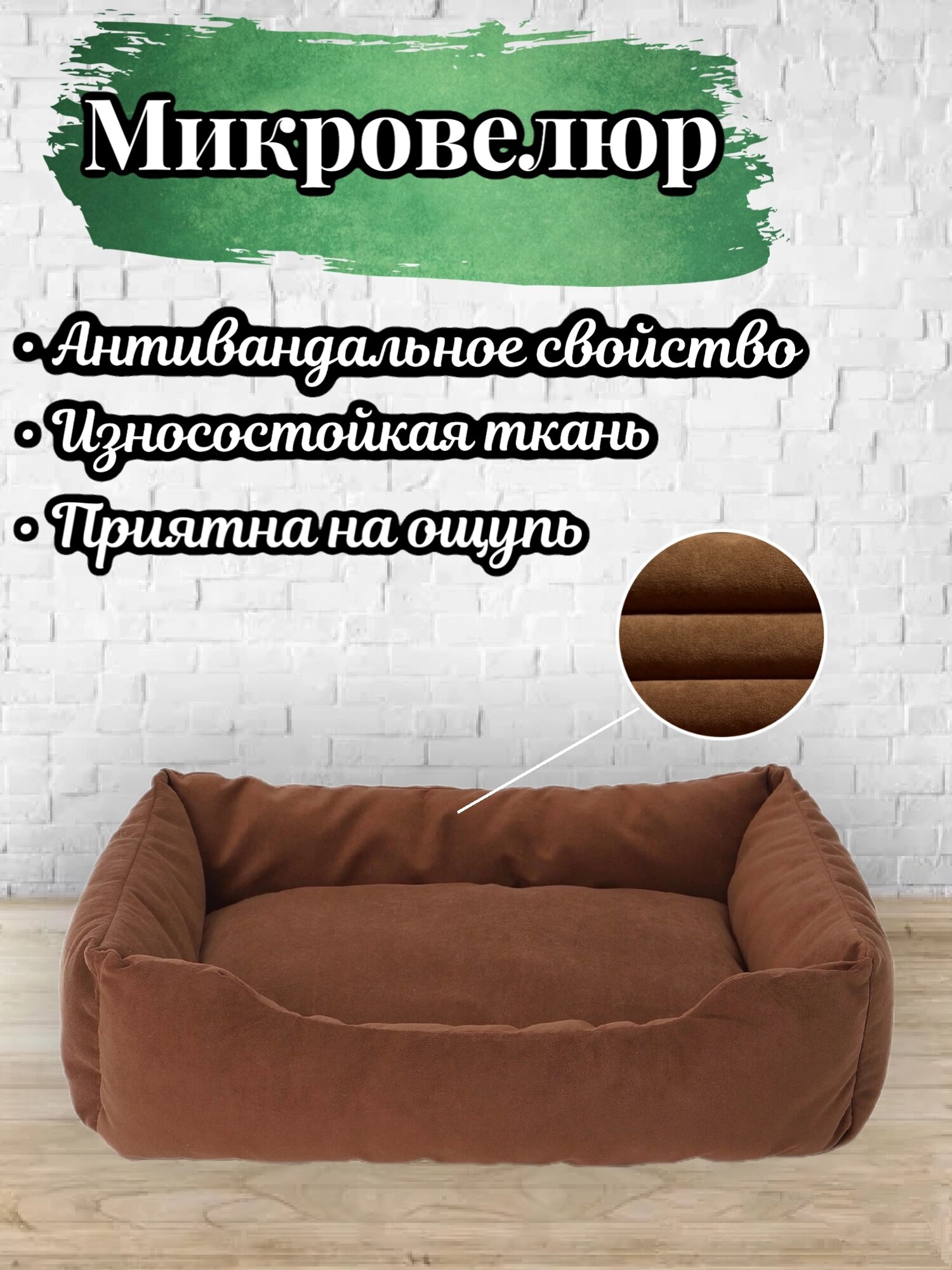 Лежанка, для кошек и собак, маленьких и средних пород, прямоугольная, шоколадный, 70х50х23 см 2 399 ₽