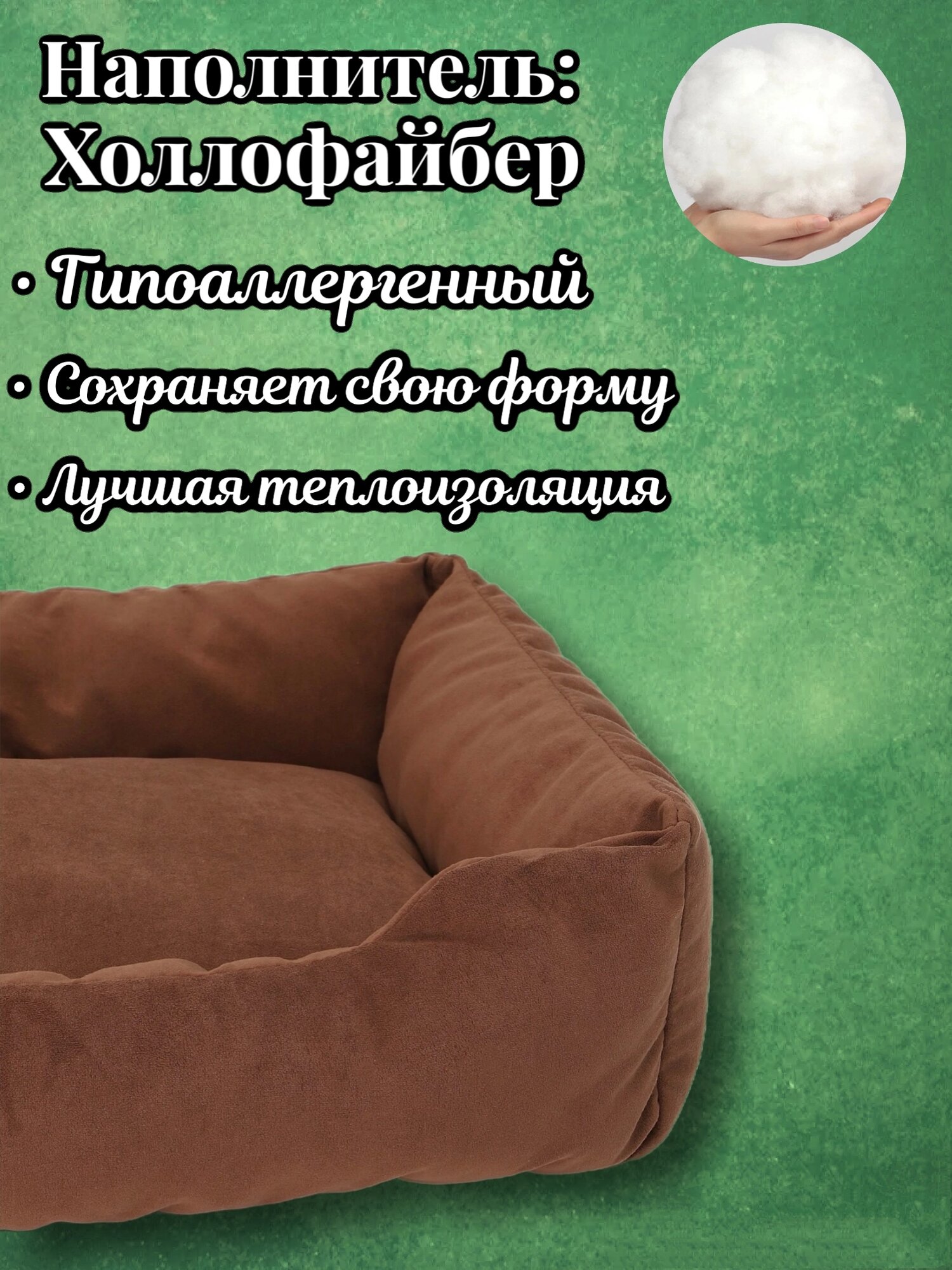 Лежанка, для кошек и собак, маленьких и средних пород, прямоугольная, коричневый, 70х50х23 см информация: