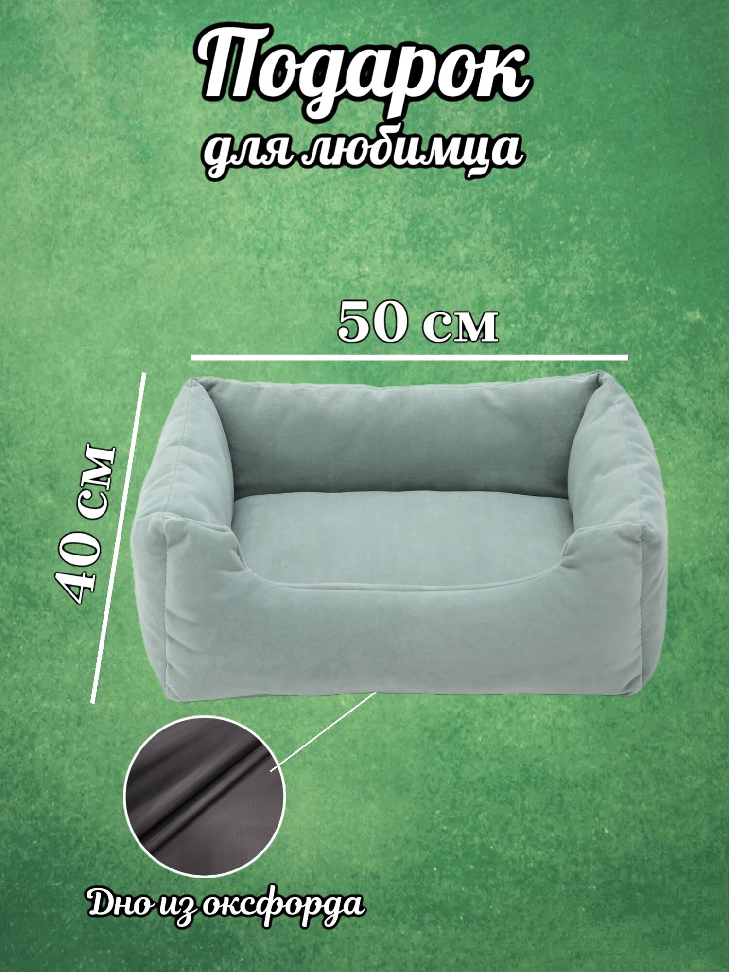 Лежанка, для кошек и собак, маленьких пород, прямоугольная, мятный, 50х40х23 см информация: