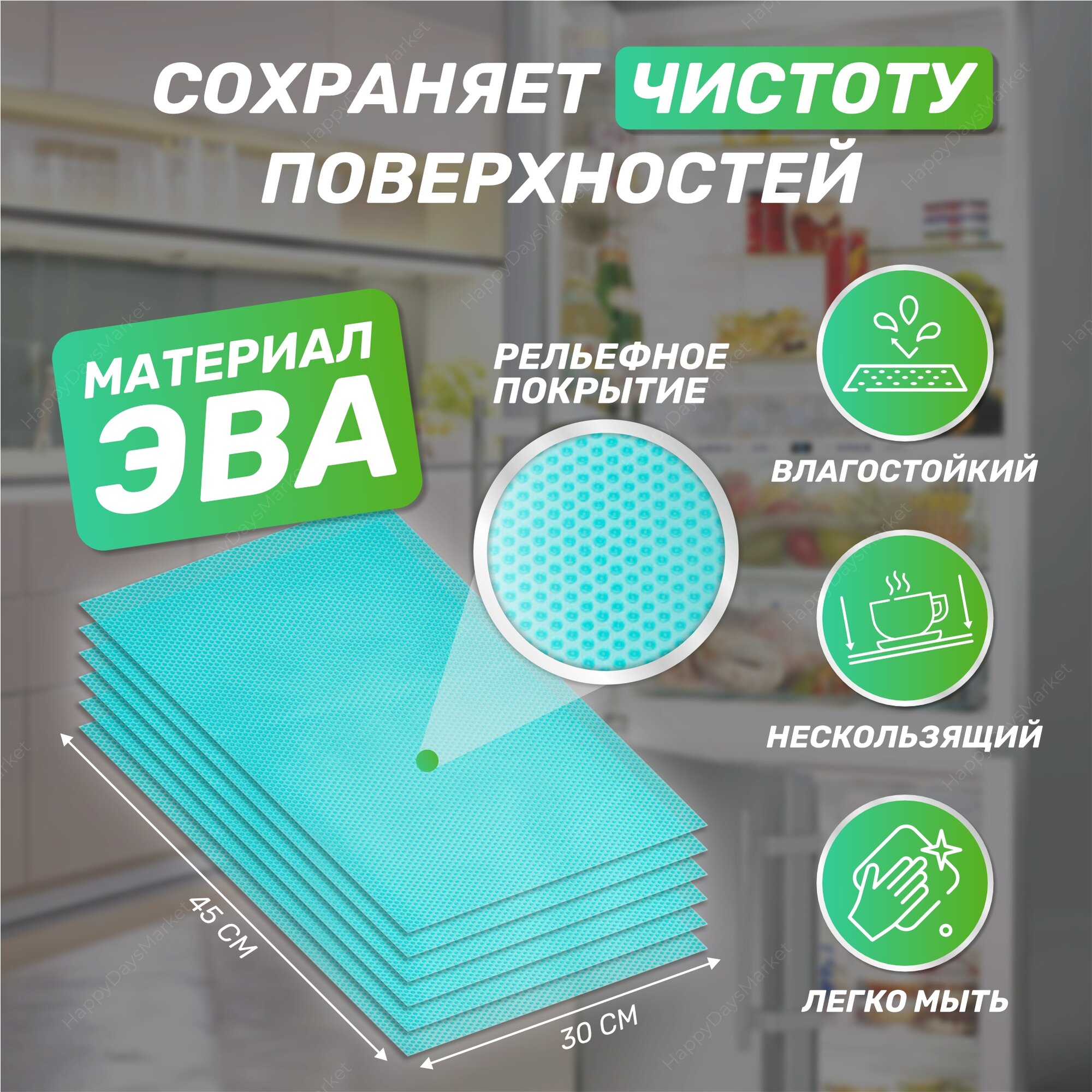 10 цен на Коврики для кухонных полок, шкафов, ящиков, холодильника. Антибактериальные, защитные, противоскользящие, водонепроницаемые. Голубые. 6шт. в наборе.
