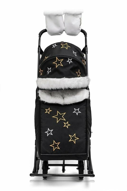 Санки-коляска Pikate Arctic выдвижные колеса, перекидная ручка, сумка для мамы, цвет Черный
