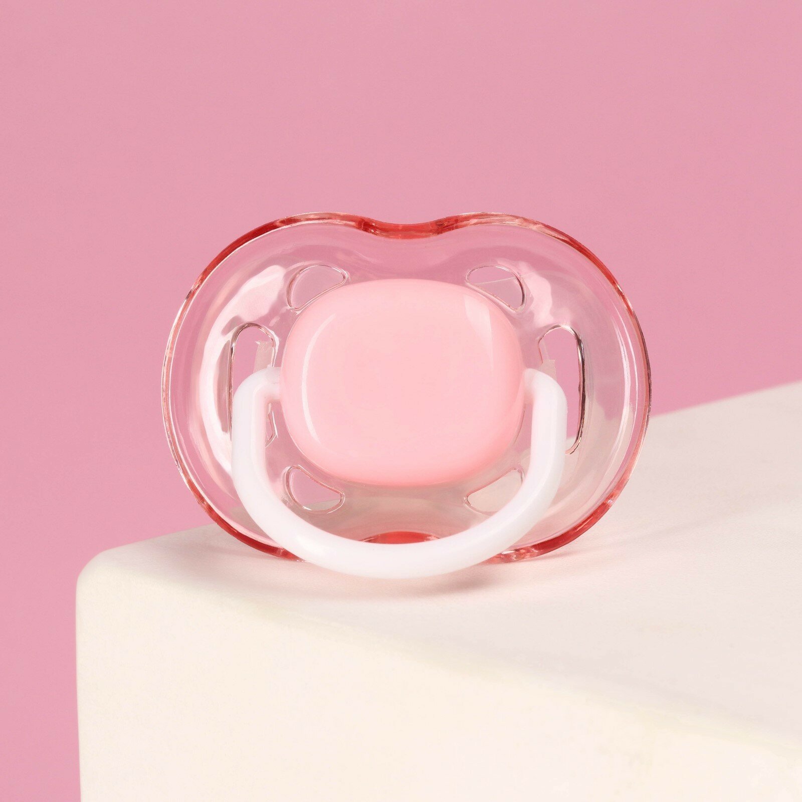 Пустышка ортодонтическая с колпачком, детская силиконовая соска, для малышей от 6 месяцев, цвет розовый 387 ₽