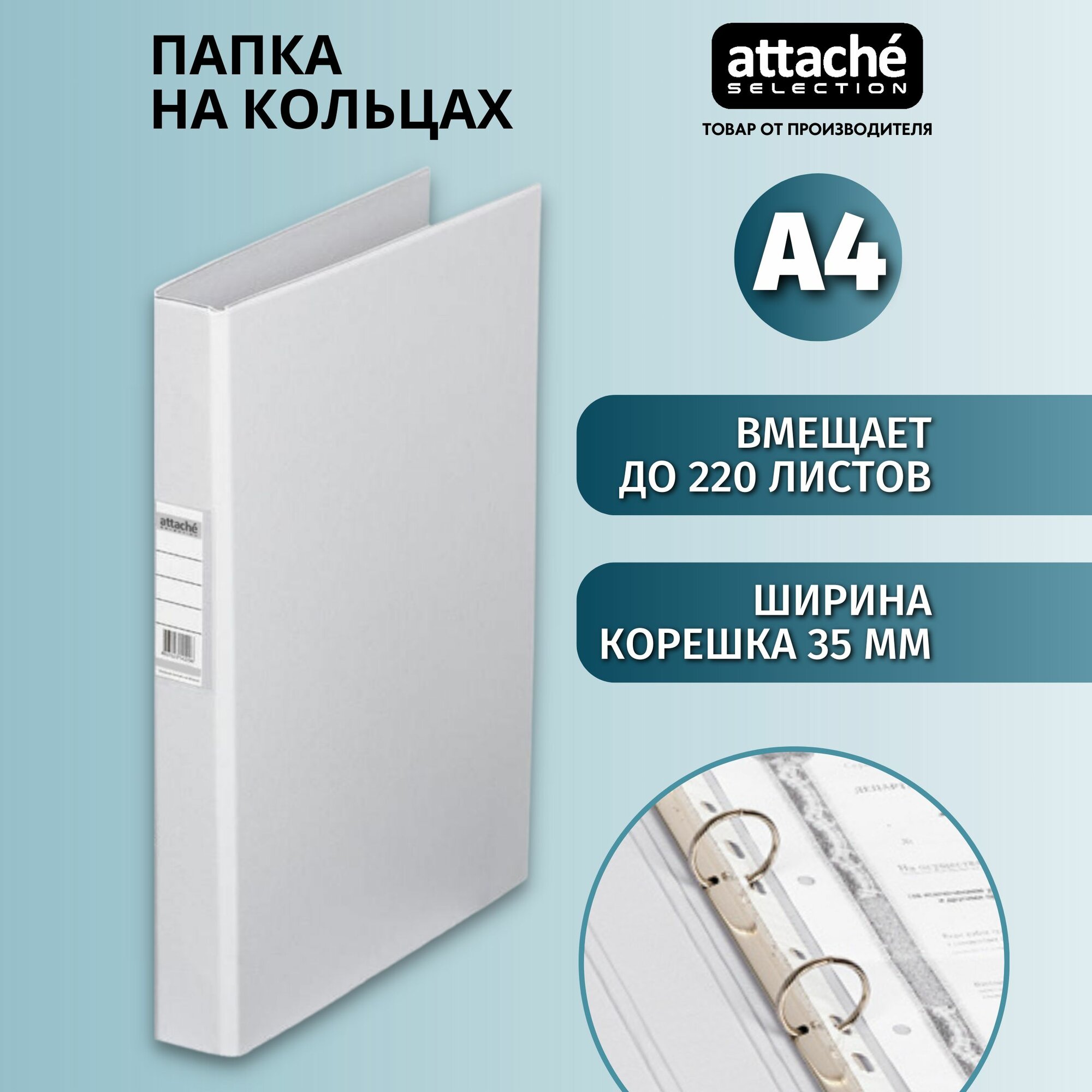 Папка на 4-х кольцах Attache Selection для документов, тетрадей, картон, A4, толщина 1.75 мм информация: