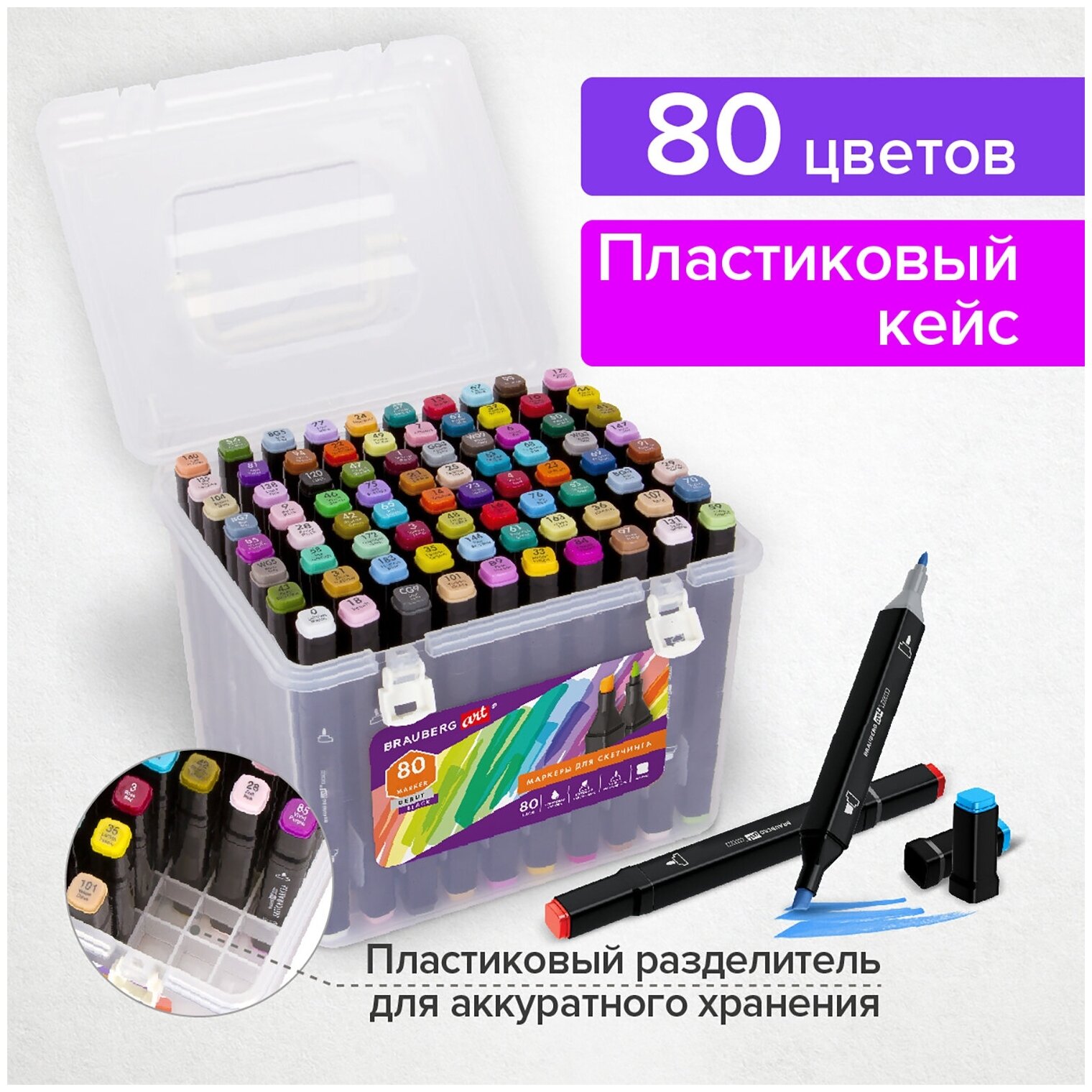 Маркеры для скетчинга двусторонние BRAUBERG ART DEBUT "BLACK", набор 80 шт., пластиковый кейс, 152132 информация: