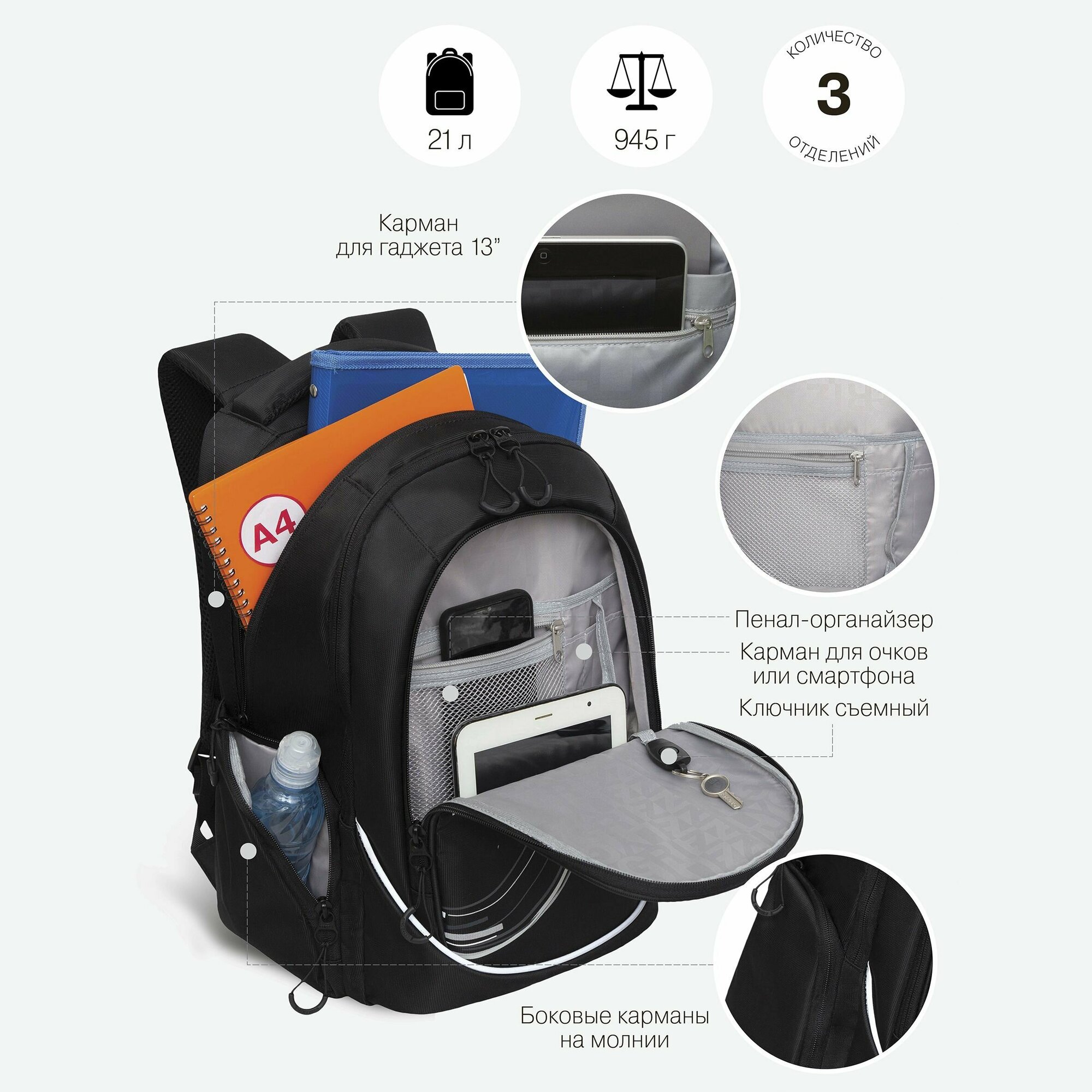 Рюкзак Grizzly школьный, анатомическая спинка, 3 отделения, для мальчиков, "Cycling", 44х28х23 см (RU-335-1/2) информация: