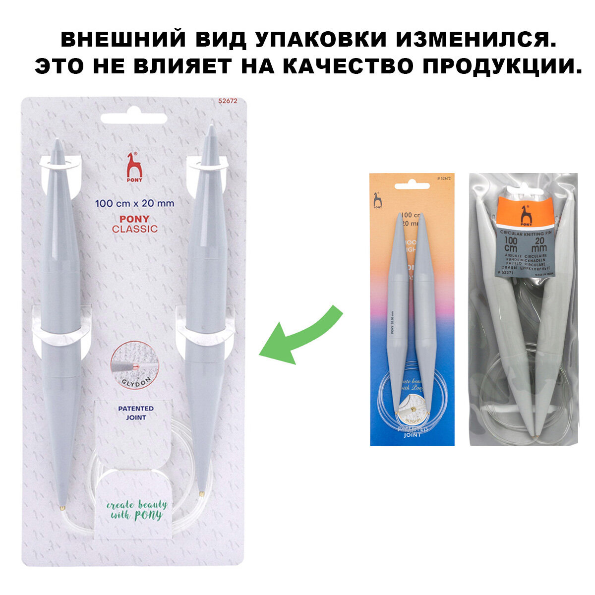 Спицы для вязания PONY круговые, 20 мм, 120 см, пластик (PN.49872) 1 136 ₽