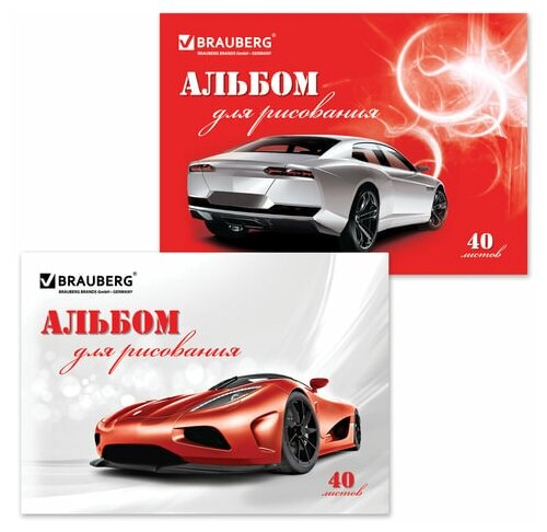 Альбом для рисования, А4, 40 листов, обложка картон, BRAUBERG, 200х283 мм, "Автостиль" (2 вида), 102852