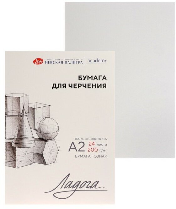 Бумага для черчения Невская палитра Ладога, А4, 200 г/м2, 24 листов информация: