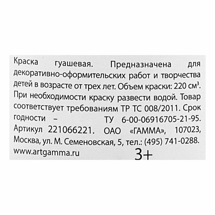 4 шт. Гуашь "Гамма" "Классическая", 220 мл, белила титановые информация: