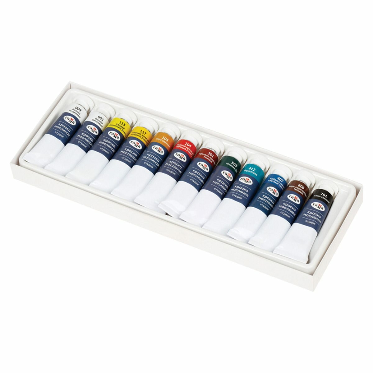 Краски Гамма Студия, масляные, худож., 10 цветов по 9 мл + 2 белых цвета, в тубах 623 ₽