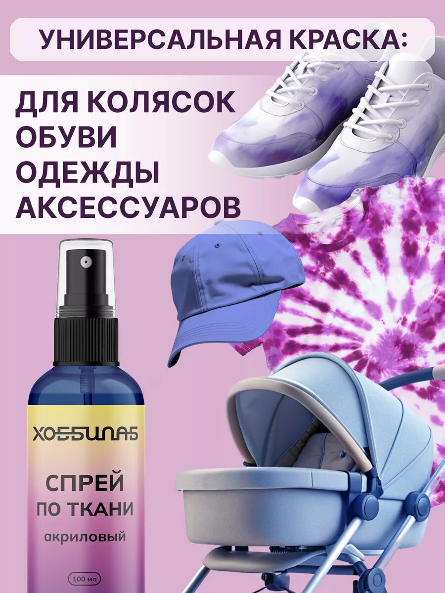 Спрей-краска хоббилаб "Для колясок и бейсболок", для ткани, акриловая, фиолетовая, 100мл 440 ₽