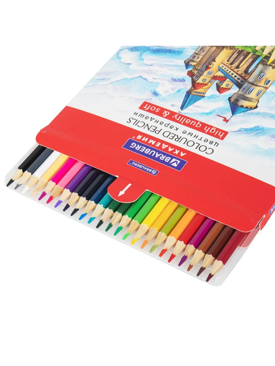 10 цен на 3шт Карандаши цветные мягкие BRAUBERG академия, 24 цвета, ш