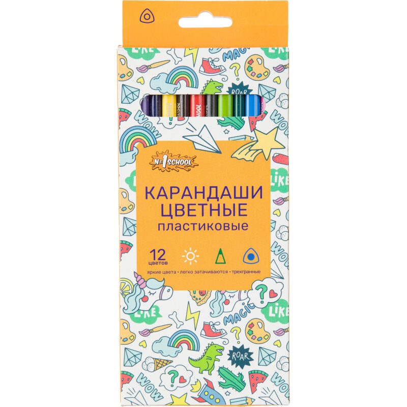 Карандаши цветные №1 School Шустрики, трехгранные, толщина грифеля 2,8 мм, набор 12 цветов 182 ₽