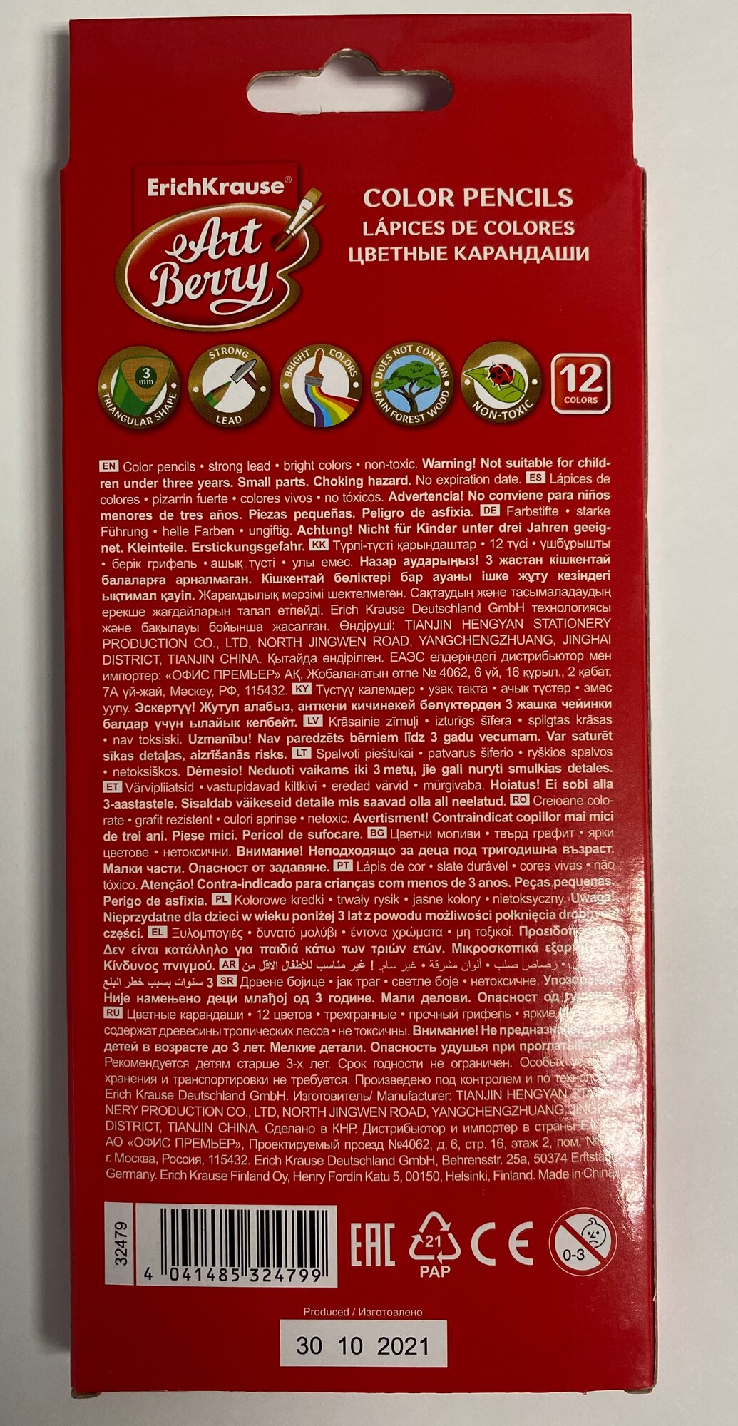 Карандаши цветные трехгранные ArtBerry 12 цветов 32479 информация: