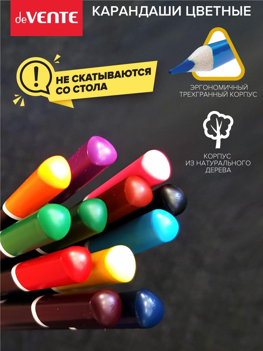 Цветные карандаши deVENTE "Trio Mega Soft", 24 цвета, 4М, диаметр грифеля 3 мм, трехгранные (5024915)