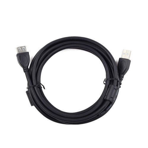 Удлинитель USB2.0 Am-Af Cablexpert CCF2-USB2-AMAF-10 Pro, экран, 2 феррита - кабель 3 метра, чёрный