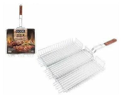 Решетка для барбекю ECOS RD-117W (рыбная, 3 секции, р-р 28х28х1,5см, общая длина 63 см, хром.)