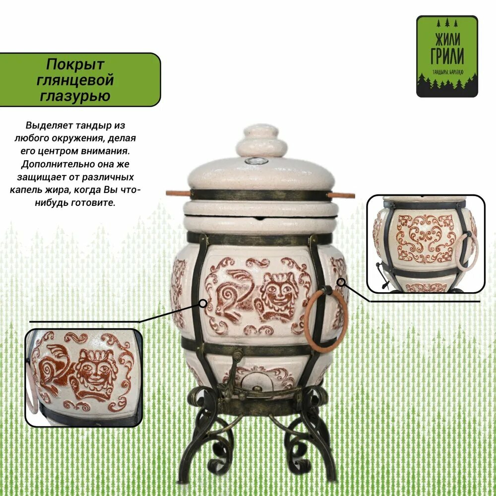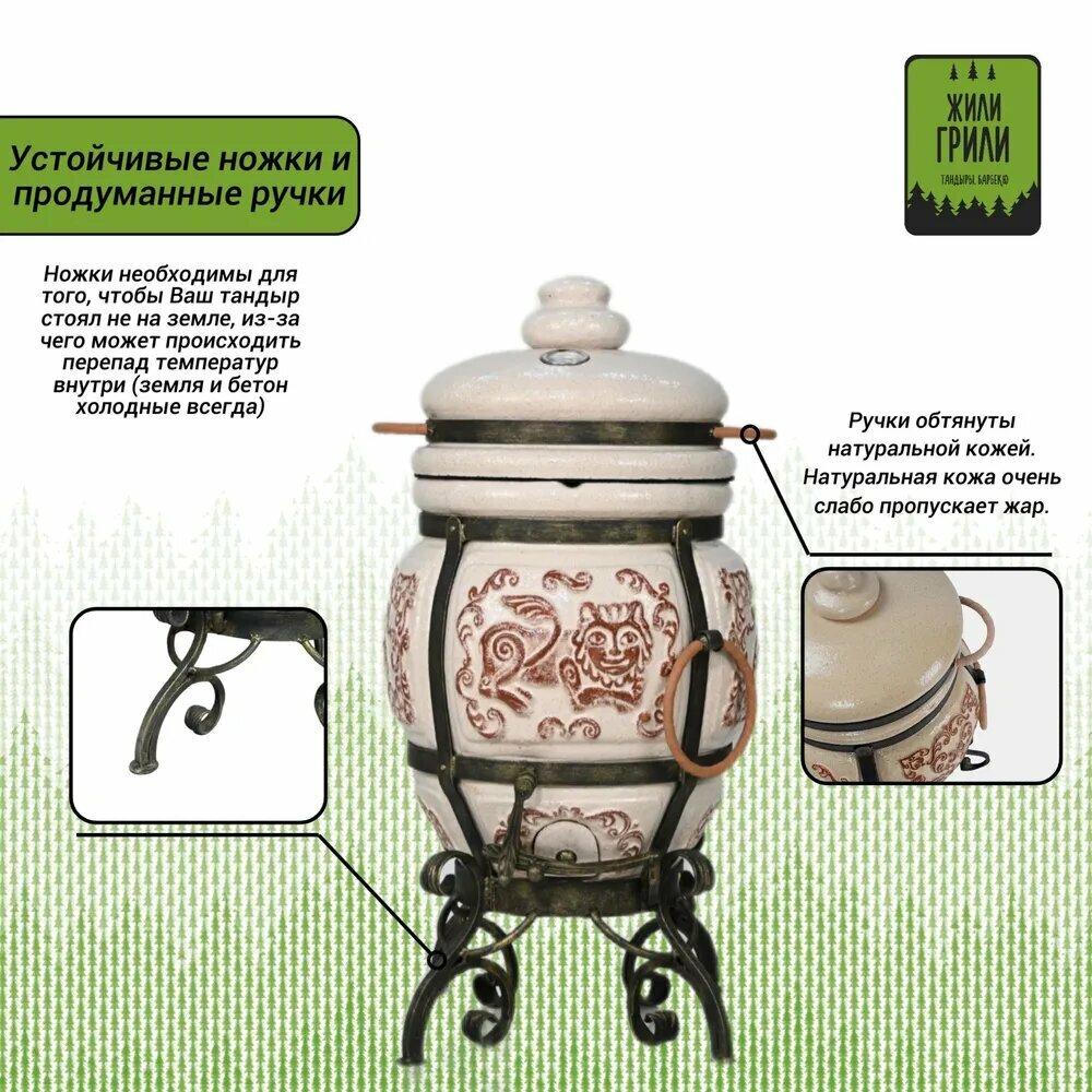 Тандыр ЭкоТандыр Арслан с термометром, цвет слоновая кость / маленький тандыр для семьи информация: