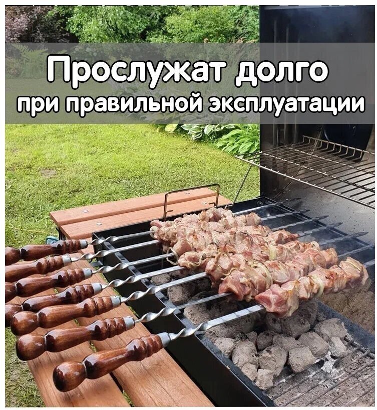 Отзывы на Шампура 700мм (рабочая 500мм) 5 штук, профессиональные из нержавеющей стали AISI и с деревянной ручкой из бука