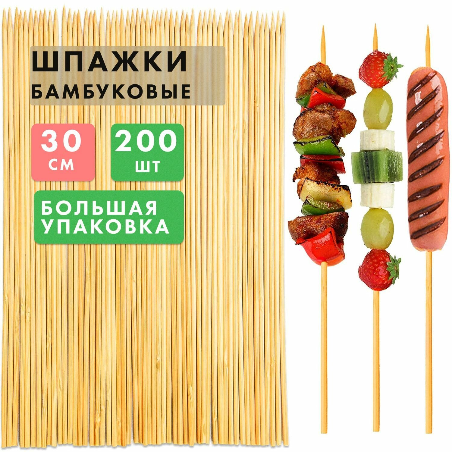 Отзывы на Бамбуковые Палочки, 30 см 200 штук. Набор Шампуров Деревянных, Шпажки для Канапе, Палочки Деревянные, Шпажки для Шашлыка